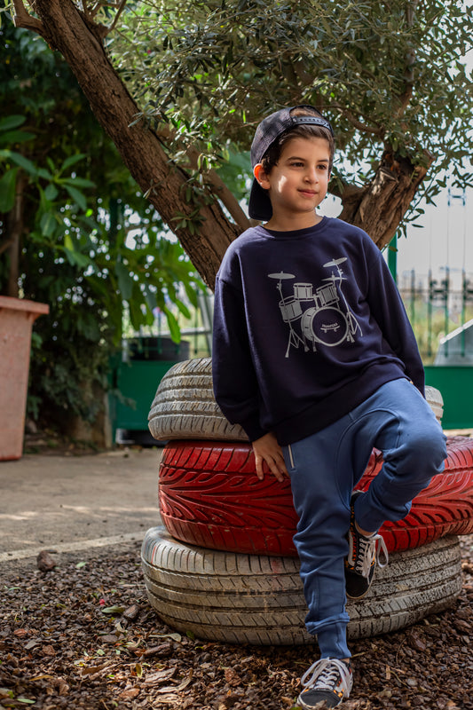 Feel the rhythm and pulse of music with the Drums Cotton Sweater - Navy